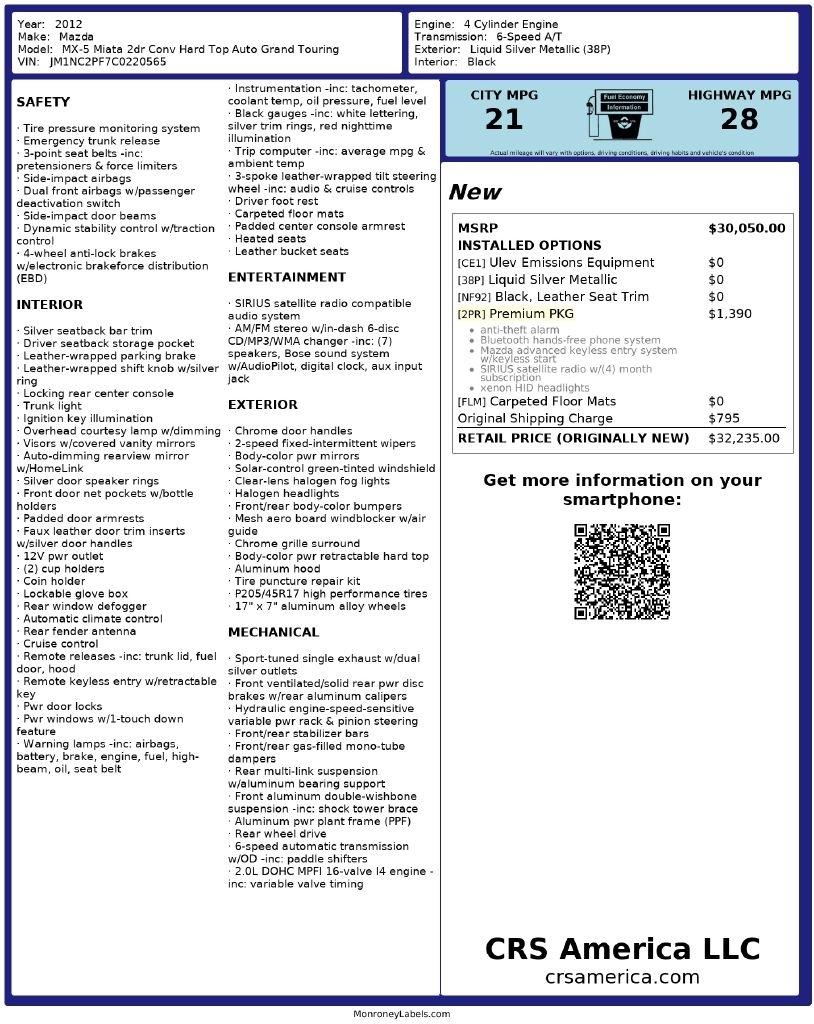 2012 Mazda MX-5 Miata Grand Touring Power Hard Top AT